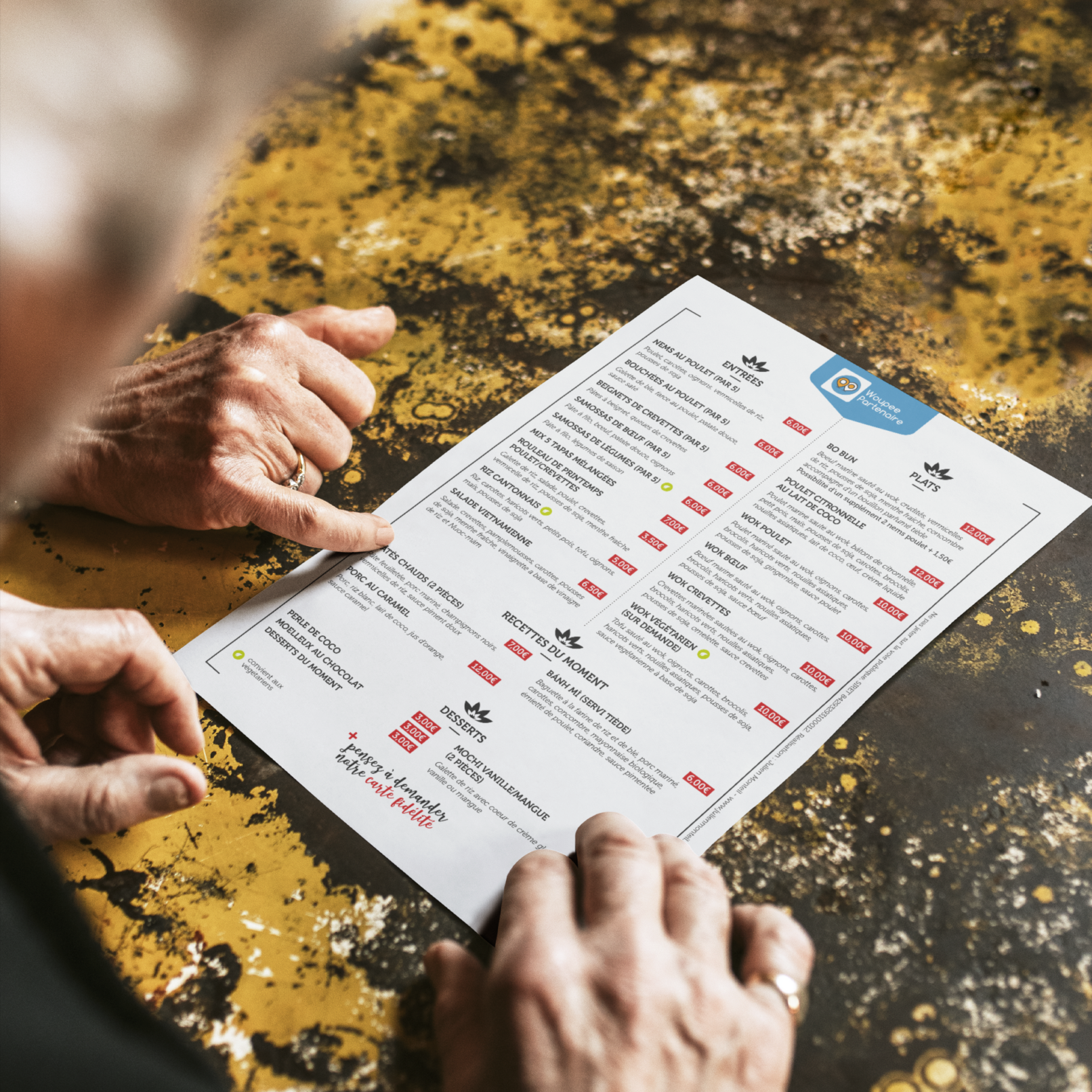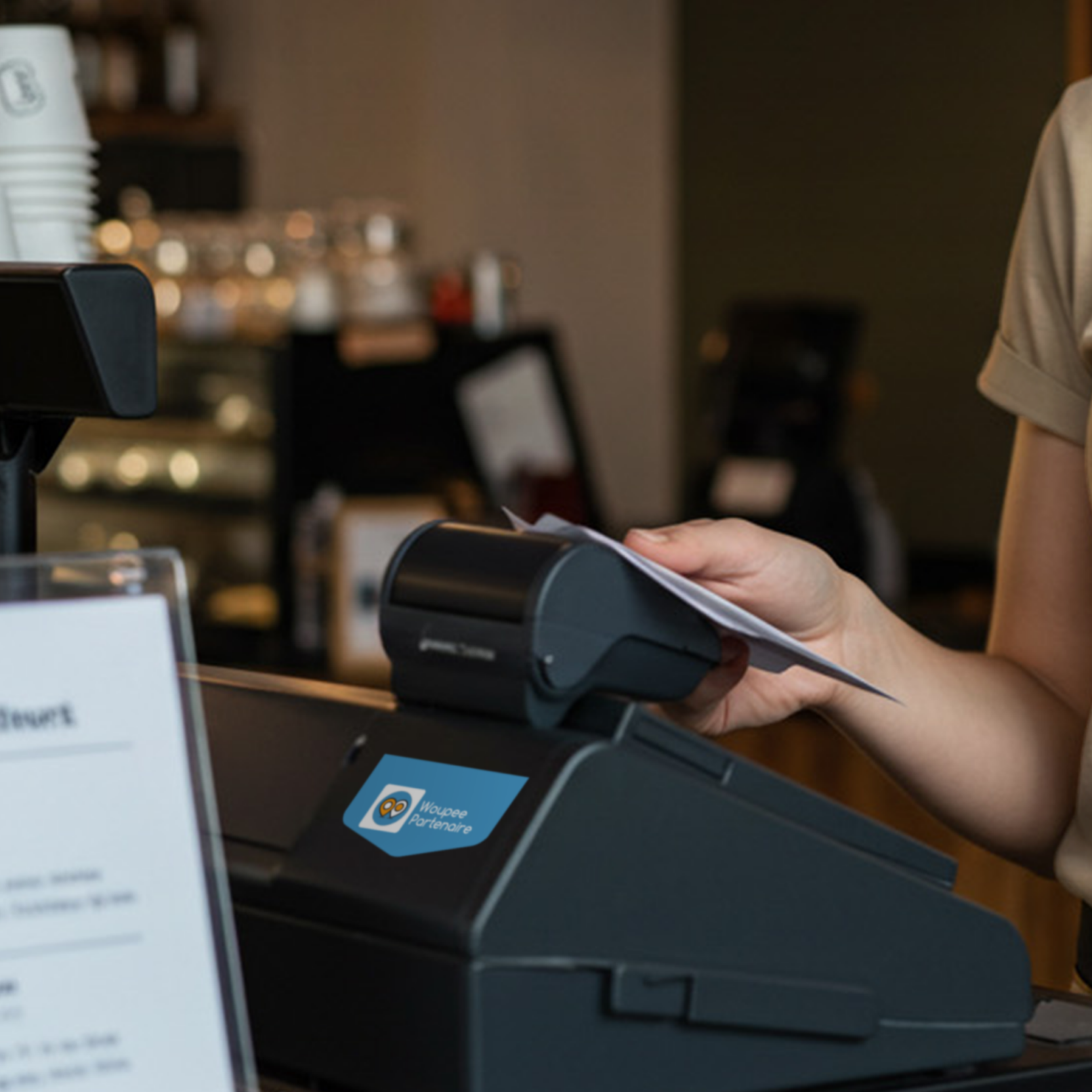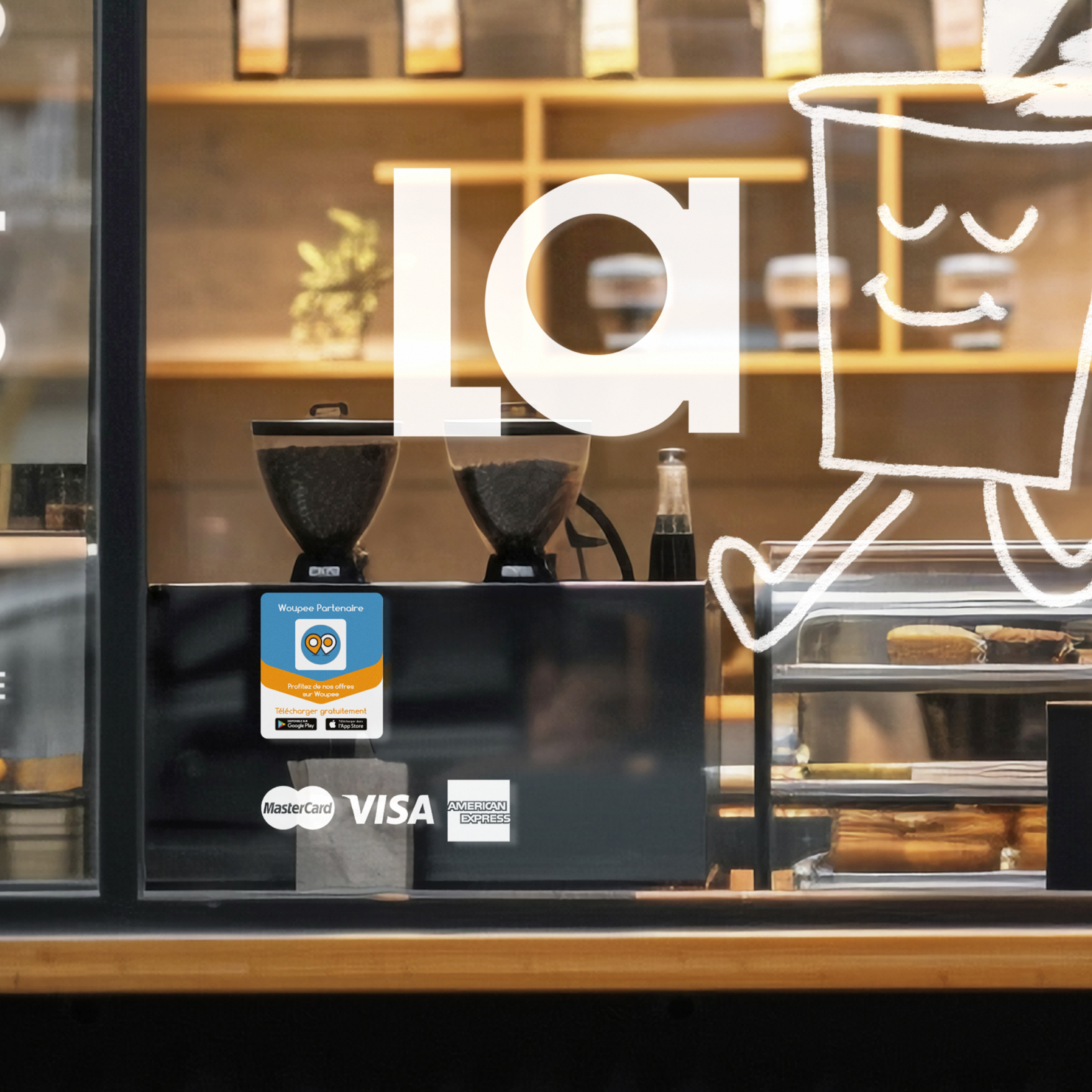 En partant de l’UI (User Interface) de l’application mobile Woupee, l’objectif était de créer une communication complémentaire offrant aux commerçants partenaires de l’offre Woupee, une continuité entre l’app et les supports de communication physique.